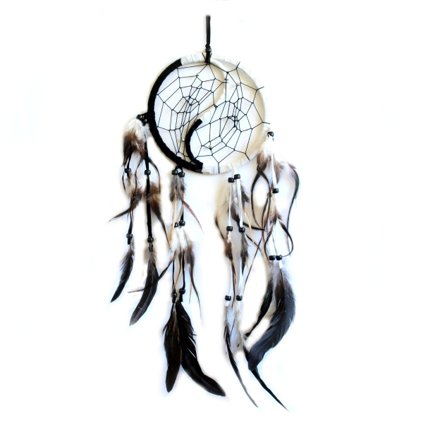 16cm Ying Yang design Dream catcher 16cm x 50cm (6.5" x 20") This is a combination of cultures the Black and white Ying Yang and the Dream catcher idea should bring peace and balance to any decor.