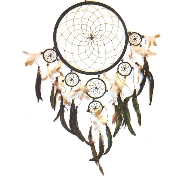 New! very Large 32cm dream catcher Black with 6 smaller circles. 32cm x 75cm (13" x 30")An impressive decorative piece.